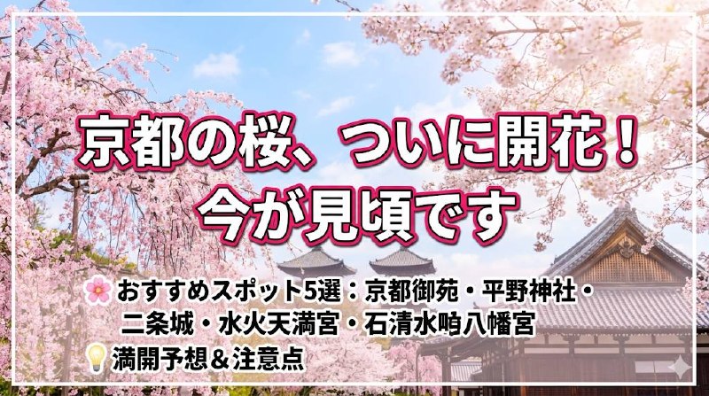 この記事では、今週末(3月28-30日)に行けば確実に見頃の桜スポットを5つ厳選してご紹介します。京都在住の私が実際にチェックした最新情報です。